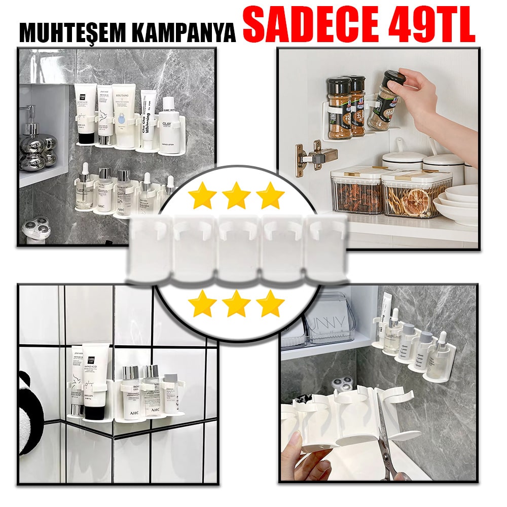 3 Adet 5 Lİ YAPIŞKANLI DUVAR RAFI -